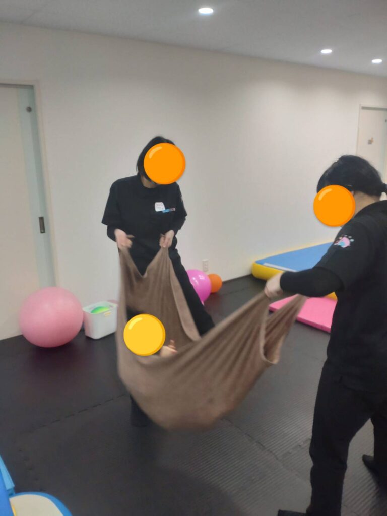 支援では揺れの方向、強さ、速さなどをお子様に確認したり反応を見て調整したりして、その子にとって一番心地良い揺れを作ることを意識しています。